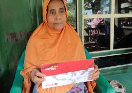 dirinya di dampingi oleh keluarga, dua kali pernah ke bank mandiri mempertanyakan bantuannya, hari pertama katanya hanya di pimpong oleh pihak bank mandiri, tak putus asa, hari keduanya dia datang lagi, ia sedikit legah dengan penyampaian salah satu karyawan bank.