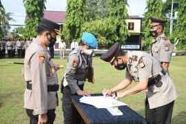 “Kepada pejabat baru, saya ucapkan selamat atas kehormatan dan kepercayaan yang diberikan oleh pimpinan polri, untuk memegang jabatan yang baru, saya harapkan agar kepercayaan pimpinan ini jangan disia siakan. Tambah Kapolres.