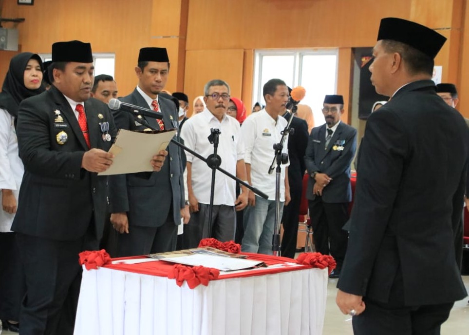 Setelah dilantik, Dedi Rahmadi membacakan Pakta Integritas sebagai komitmen dalam melaksanakan tata kelola pemerintahan yang baik.