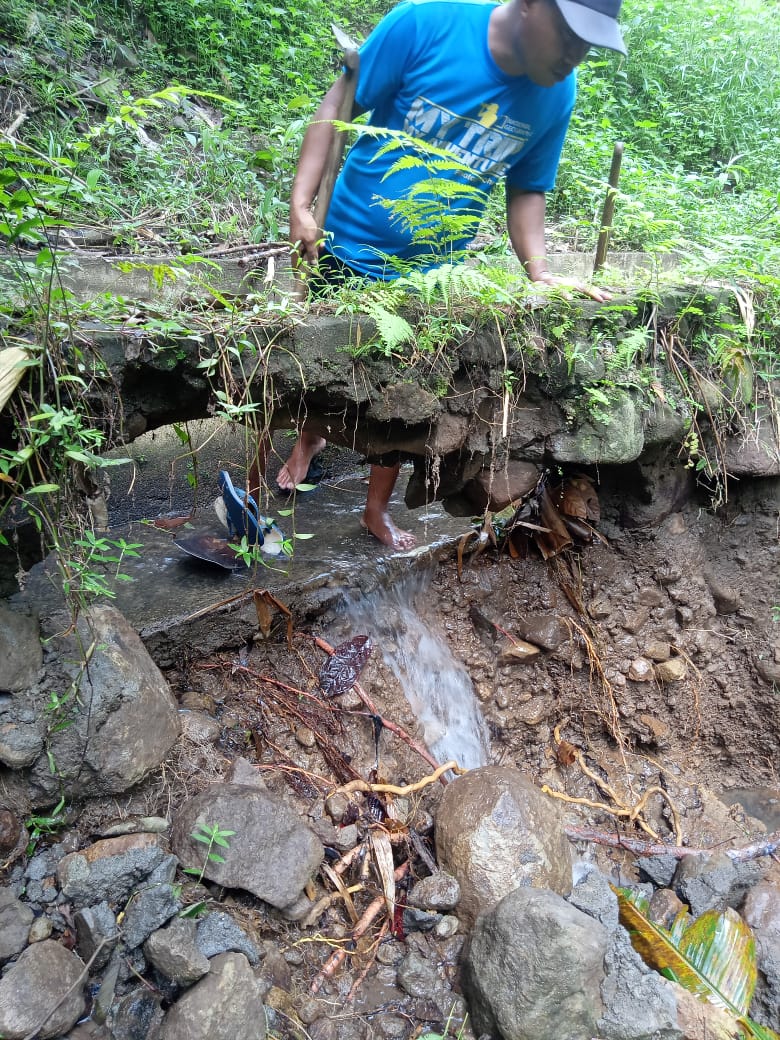 “Irigasi ini rusak sudah beberapa bulan, akibat volume kiriman air dari hulu besar saat hujan deras hingga mengakibatkan irigasi jebol, Walaupun masyarakat turun perbaiki secara swadaya namun itu tidak bertahan jika hujan deras turun kembali. Beruntung musim ini masih ada hujan, jadi sawah petani masih bisa berair.Kata Opu