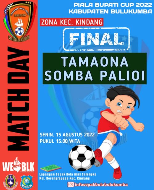 Bulukumba, Beranda.News- Puncak Piala “Bupati Cup” Zona Kecamatan Kindang akan berlangsung besok Senin 15 Agustus 2022