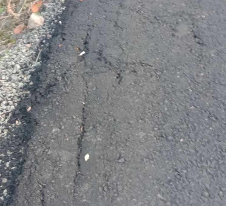Sedangkan dari pantauan langsung media ini dilokasi, menemukan beberapa titik jalan yang retak dan mudah terkelupas, Bahkan ada bagian jalan yang berpotensi longsor