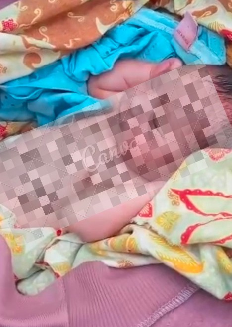 Bayi yang masih melekat tali pusar itu di bungkus dengan sarung, Hingga kini belum diketahui siapa yang tega membuang bayi tersebut