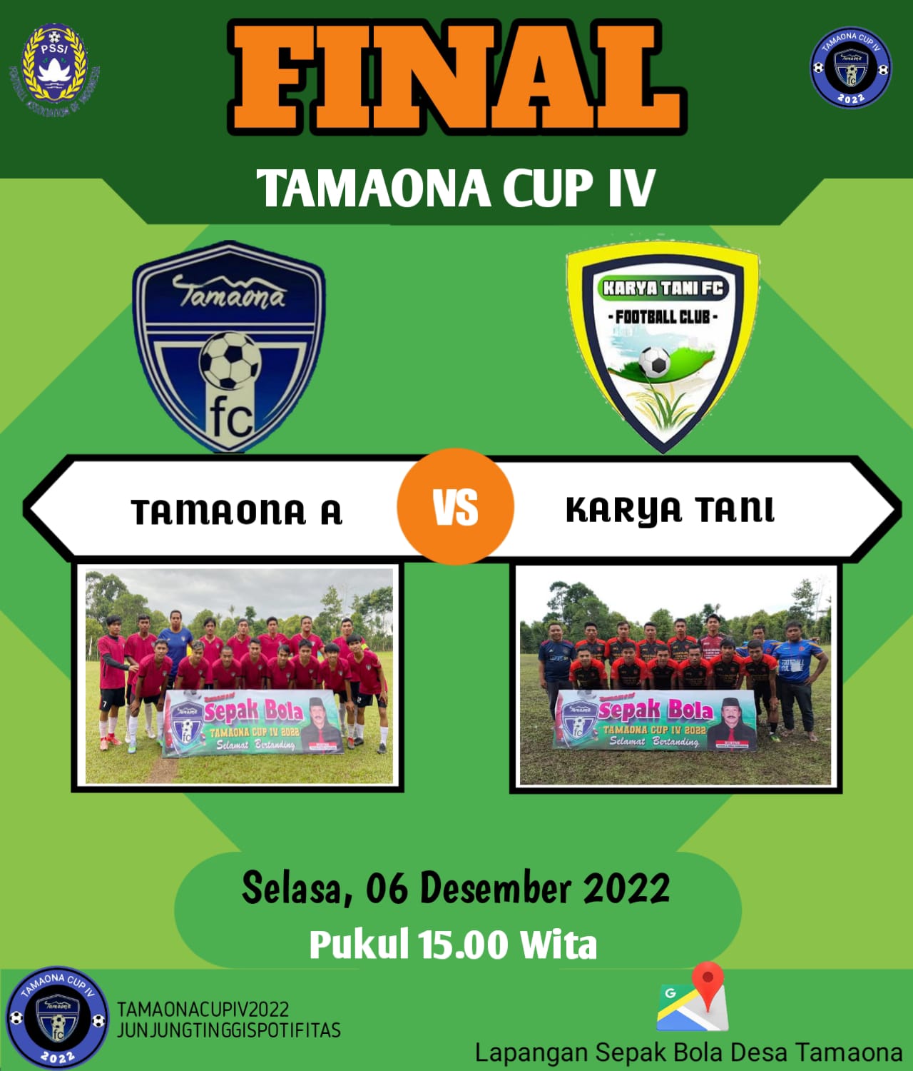 Bulukumba, Beranda.News- Laga Final Turnamen sepakbola Tamaona Cup IV akan digelar besok, Selasa 6 Desember 2022 dilapangan Desa Tamaona, Kecamatan Kindang, Bulukumba