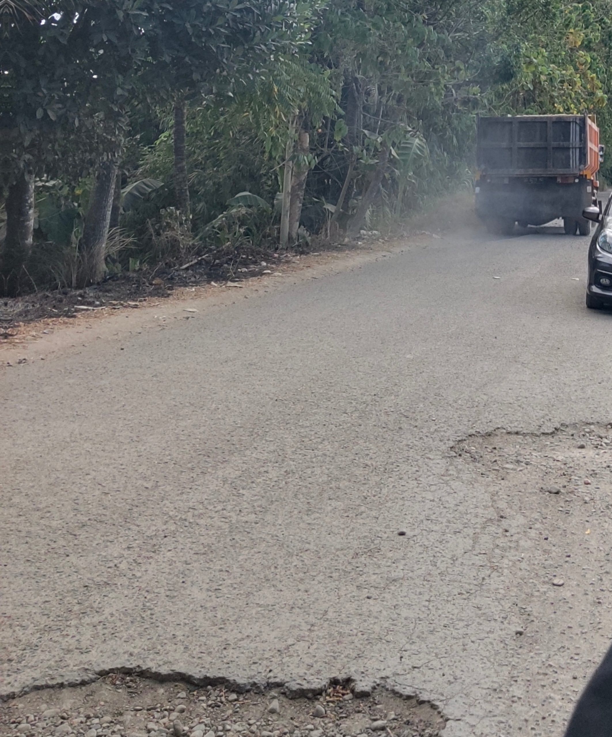 “Kami sebagai masyarakat di sini merasa tidak berdaya. Material berasal dari desa kami, tetapi jalannya rusak parah. Pemerintah seharusnya melarang tambang di sini jika mereka tidak akan memperbaiki jalan,” tegasnya.