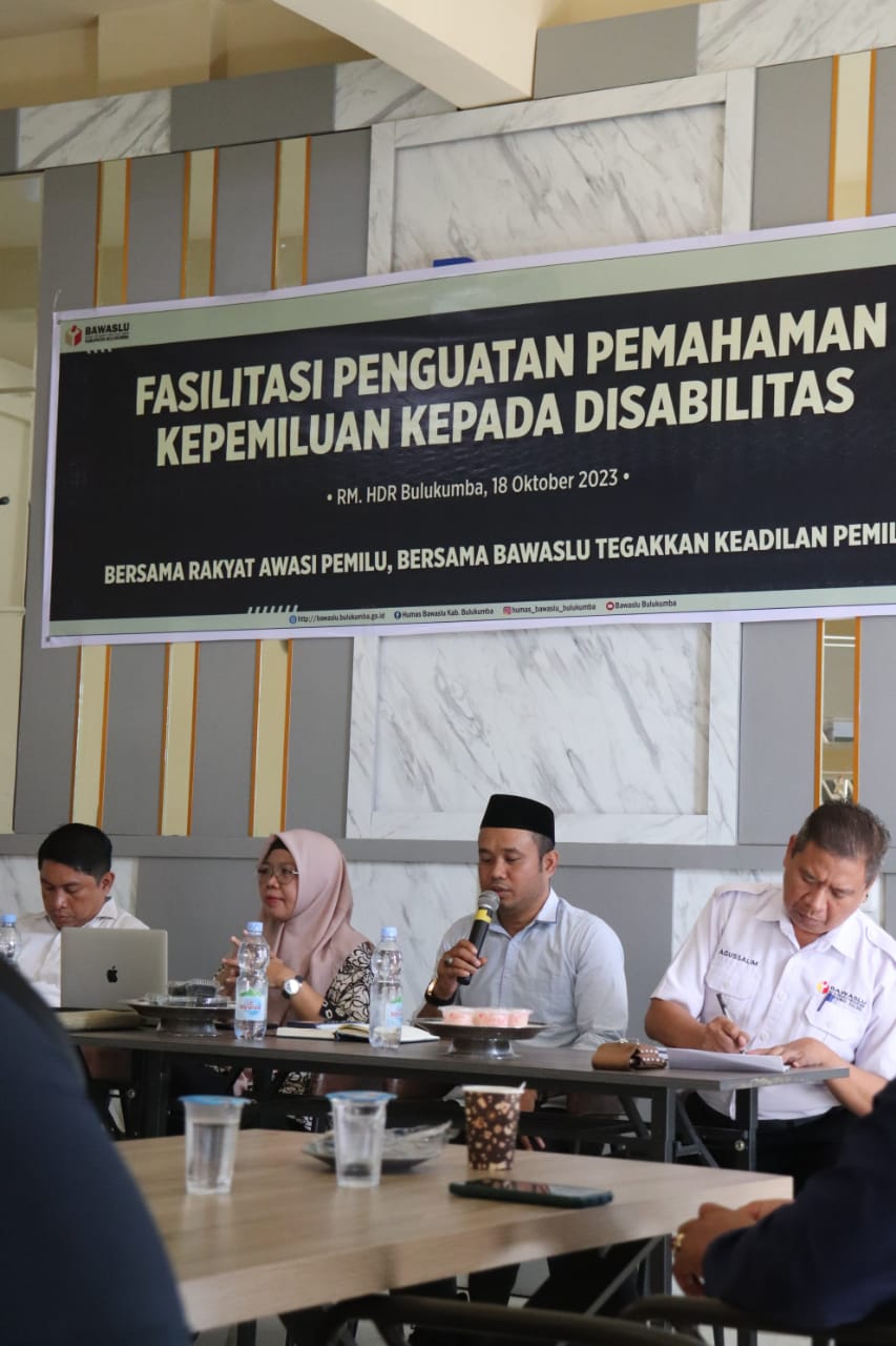 Bulukumba, Badan Pengawas Pemilihan Umum (Bawaslu) Kabupaten Bulukumba mendukung terwujudnya Pemilihan Umum 2024 yang ramah disabilitas, komitmen tersebut di wujudkan dengan aktif melakukan sosialisasi tentang pemahaman Pemilu kepada disabilitas.