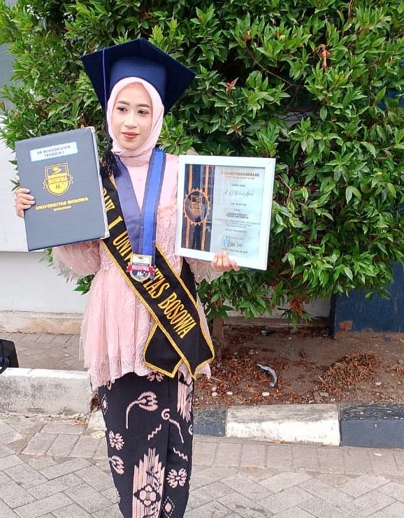 Mahasiswa Program Studi Akuntansi ini mencapai prestasi gemilang dengan IPK 3.98, juga menyabet gelar Wisudawan Terbaik Fakultas Ekonomi dan Bisnis Universitas Bosowa 45 (Unibos).