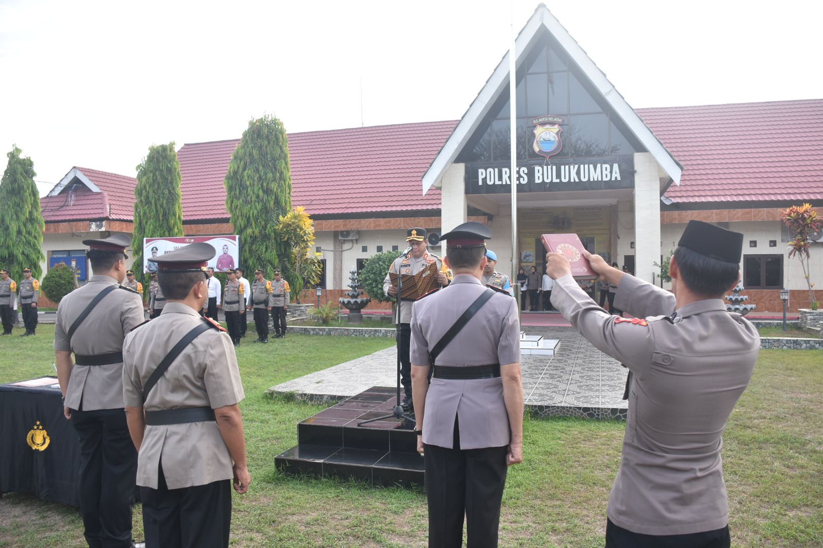 Bulukumba, Beranda.News—AKBP Supriyanto, S.I.K., M.Si, Kapolres Bulukumba, memimpin upacara pelantikan Kapolsek Gantarang dan pengambilan sumpah serta jabatan Kasat Intelkam Polres Bulukumba.