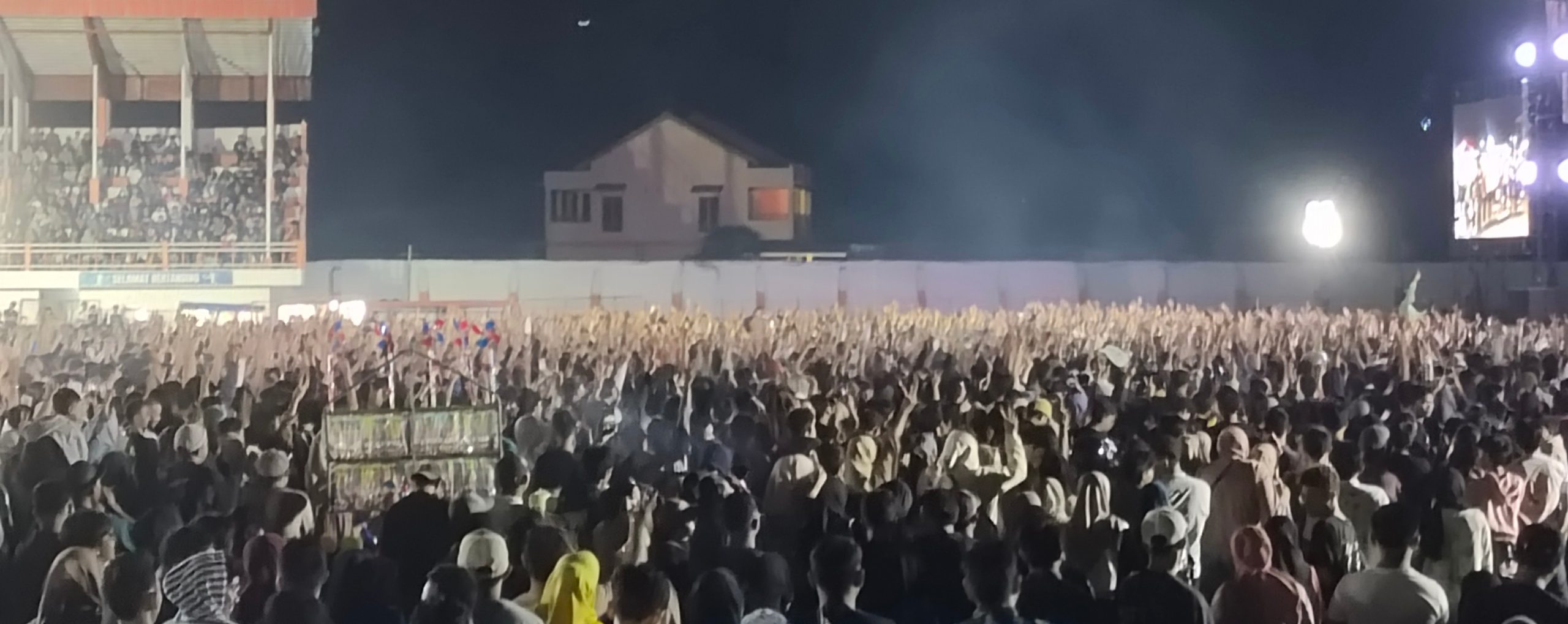 Para pengunjung, dari berbagai lapisan masyarakat, memenuhi stadion untuk menikmati penampilan energik dari band yang memukau