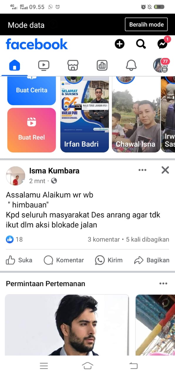 Status Facebook Kepala Desa Mantang, seorang aktivis Serikat Rakyat Bulukumba (STB), mendapat tanggapan pro dan kontra dari warganya