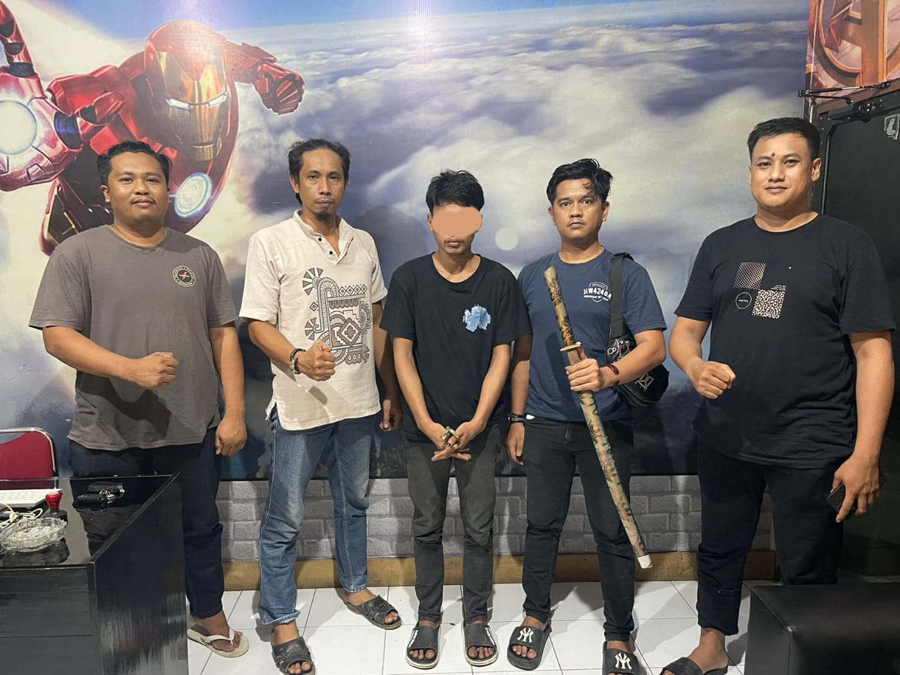 Selain mengamankan terduga pelaku, barang bukti berupa senjata tajam jenis samurai yang digunakan dalam penganiayaan juga berhasil diamankan.