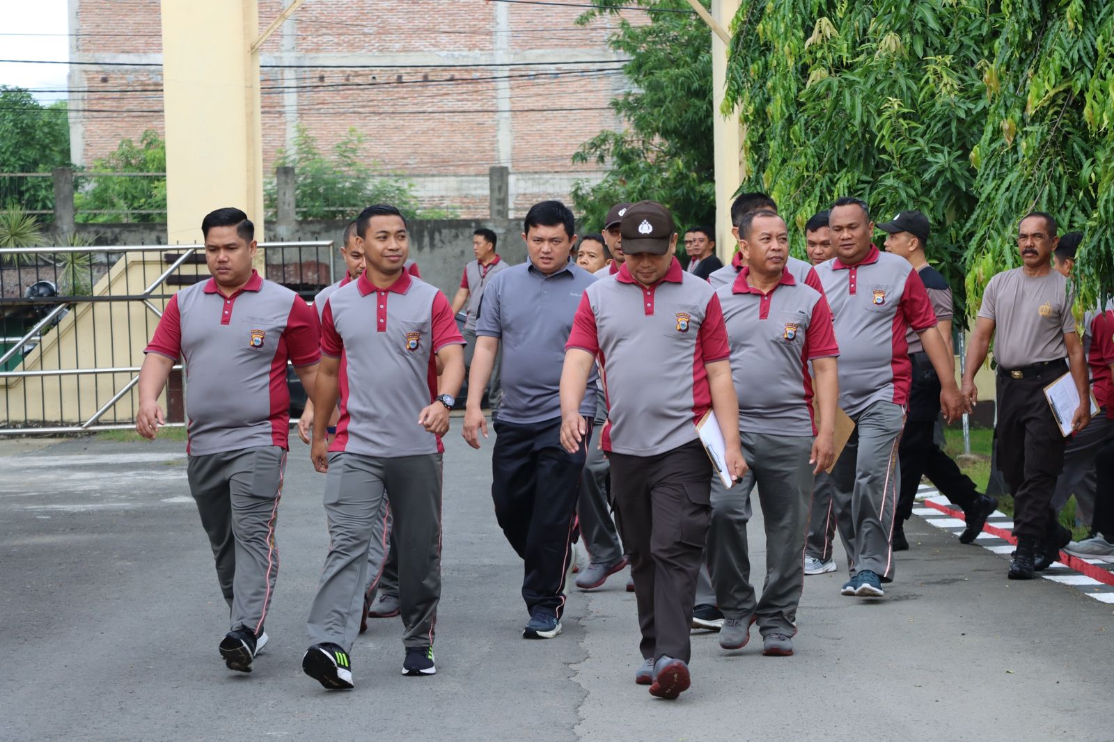 Dipimpin langsung oleh Kabag SDM Polres Bulukumba, AKP Syamsul Bahri, S.Sos., M.M., para personel melakukan olahraga dengan berjalan kaki mengelilingi area Mako Polres Bulukumba sejauh 3 kilometer.