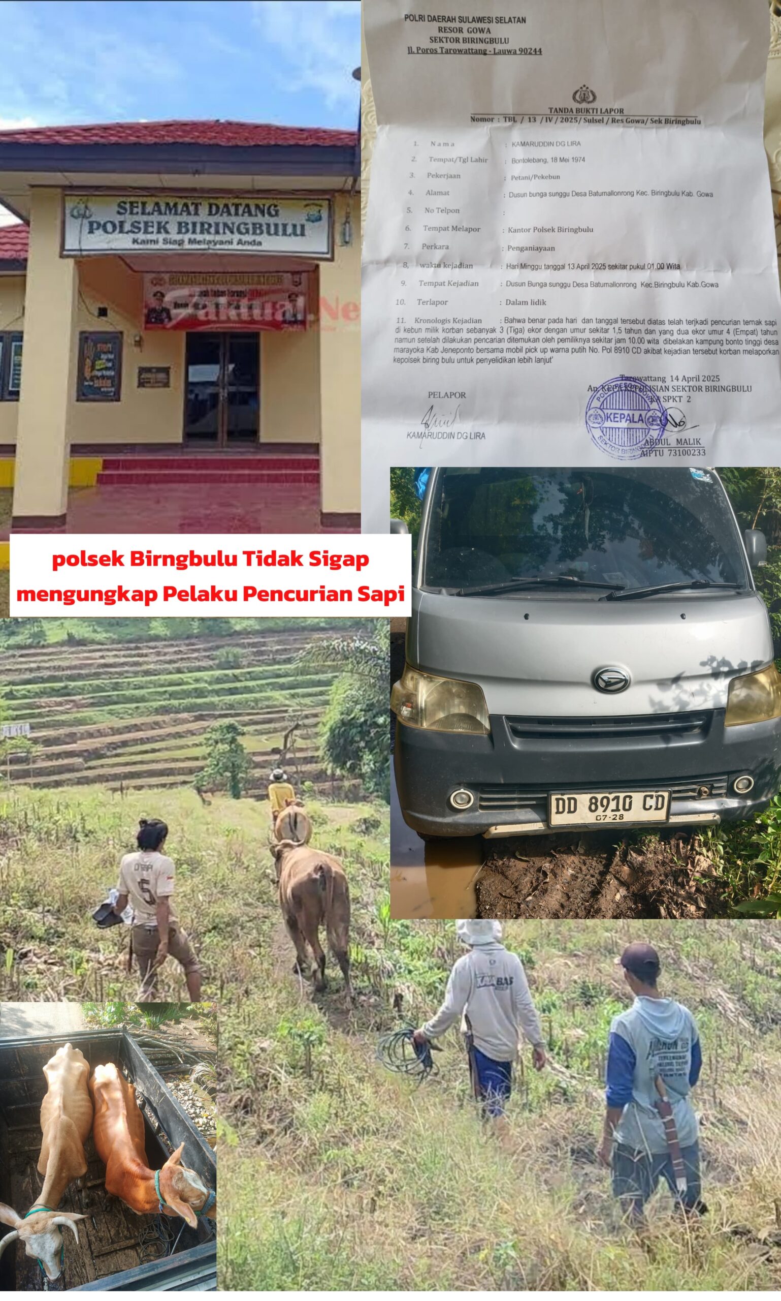 Warga yang menjadi korban akhirnya melaporkan pencurian ternak sapi itu di Markas Besar Kepolisian Sektor (Mapolsek) Biring Bulu, pada 13 April 2025 lalu.