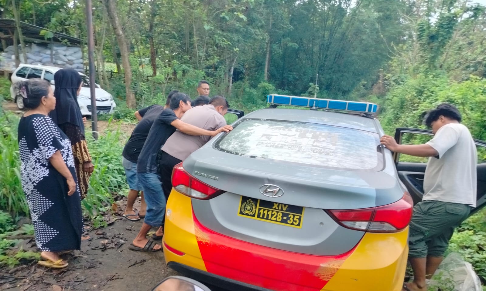 Setelah proses identifikasi dan olah TKP rampung, Kapolsek bersama warga dan personel Polsek Bontotiro mengevakuasi jenazah menggunakan mobil dinas Polri ke rumah duka.
