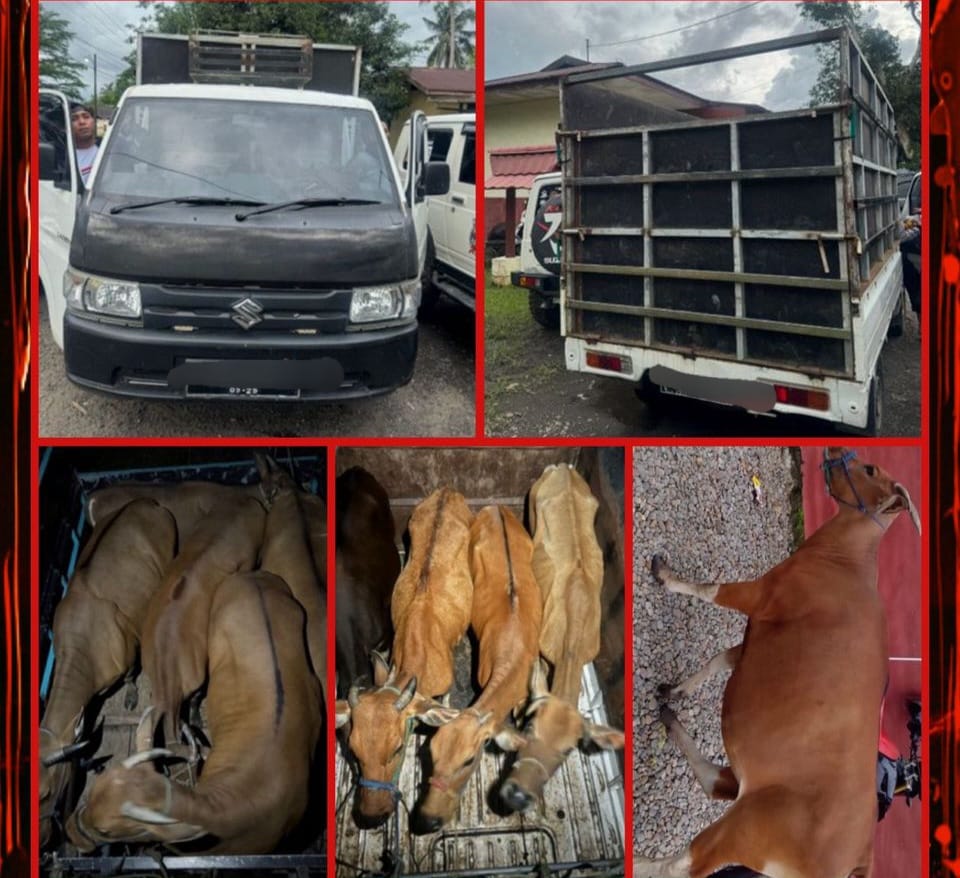 Para pelaku menggunakan mobil Suzuki Carry untuk mengangkut sapi curian milik korban HD.