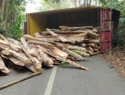 Bulukumba, Beranda News-Sebuah truk bermuatan kayu terguling karena tidak kuat menanjak dan mengalami transmisi di Jalan Poros Desa Tibona, Kecamatan ...